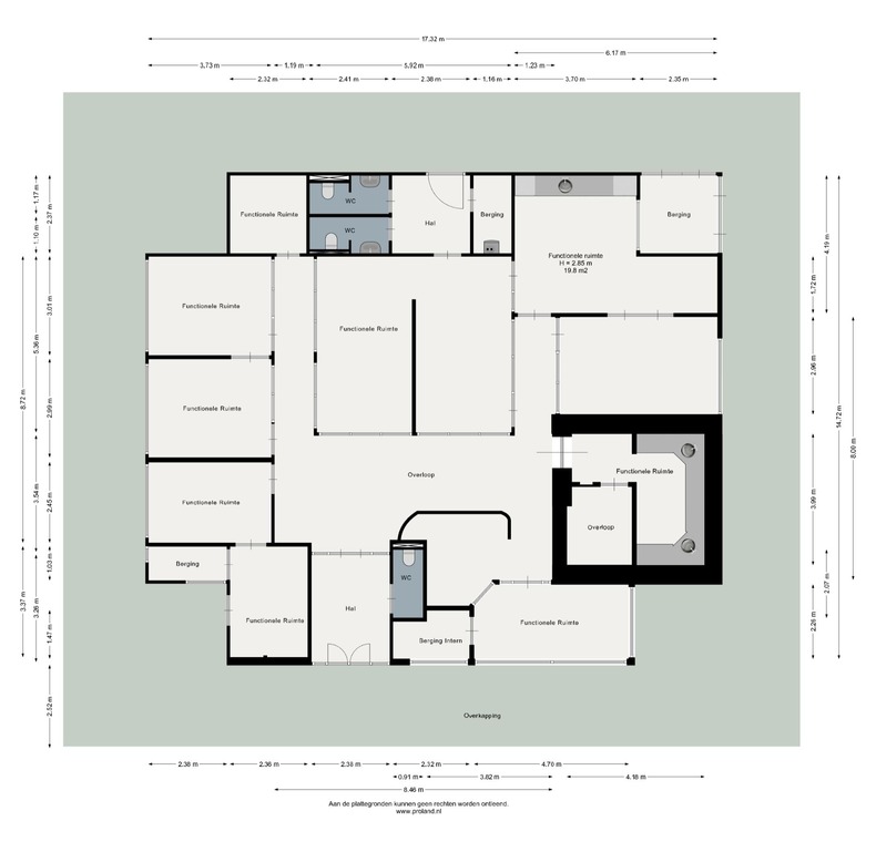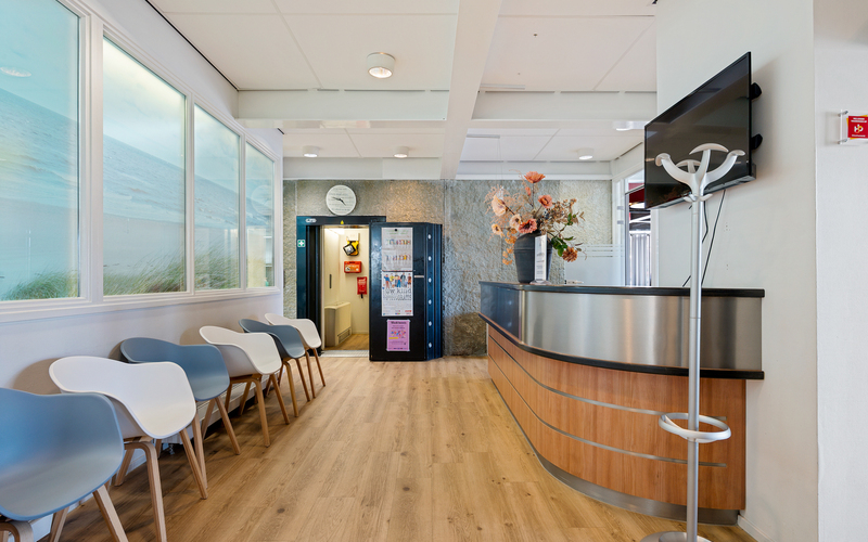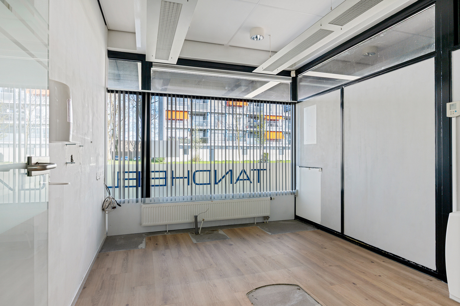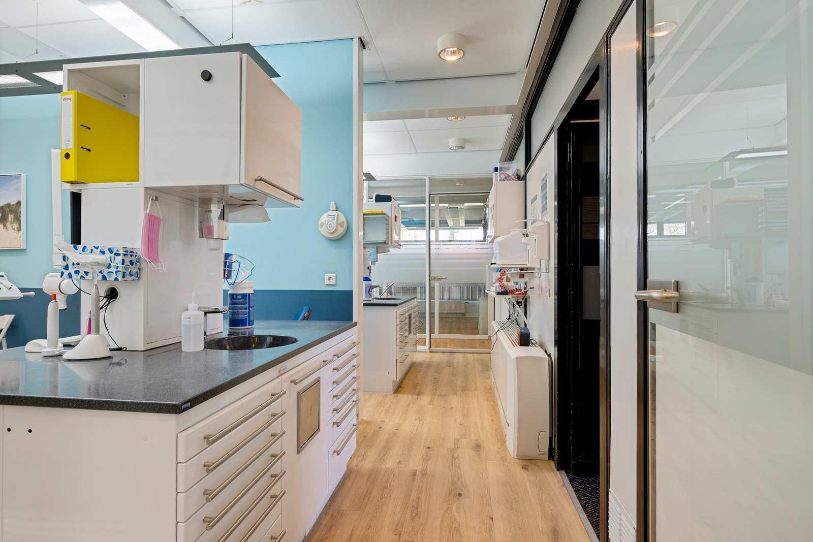 Hal, gangen, toilet, receptie, lab-ruimte, kantine, 6 behandelkamer/kantoren, toiletgroep, achter-entree en diverse bergingen.